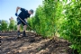 Studenten Yuverta planten bomen en struiken op schoolterrein