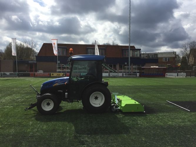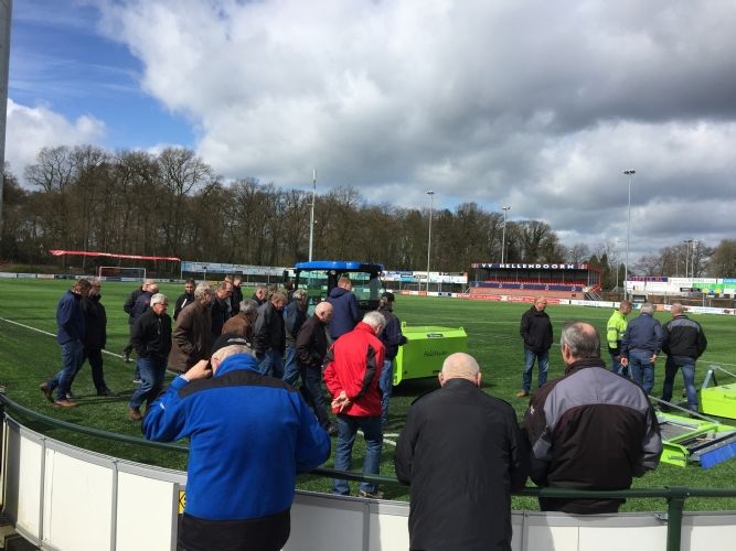 Tijdens de informatieve dag werd er gediscussieerd over veel gestelde vragen over het kunstgrasonderhoud en werden er demonstraties op het veld gegeven.