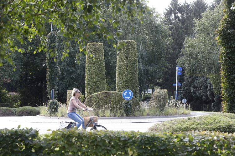 Hein van Iersel, hoofdredacteur van vakblad De Hovenier: ‘Het unieke aan de winnende rotonde is dat deze echt als een tuin voelt. Het is alsof je niet op een rotonde rijdt, maar in een tuin. De ontwerpers van hoveniersbederijf Harry Esselink hebben dat heel knap gerealiseerd, door ook de directe omgeving van de rotonde te beplanten met wolkvormig geknipte Lonicera nitida ‘Maigrun’ (struikkamperfoelie, red.), de helder witte stammen van Betula utilis 'Doorenbos’ (zilverberk, red.) en wilde wingerd (Parthenocissus tricuspidata 'Veitchii'), die tegen de lantaarnpalen omhoog mag groeien. Op het centrale plein van de rotonde zorgen blokvormige geknipte haagbeuken voor vorm.’