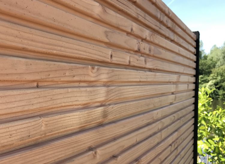 Daarnaast is Lariks Douglas hout vol karakter, zo is het een knoest houdende en harshoudende houtsoort. Door het hars in het hout heeft het een langere levensduur. Toch raden wij je wel aan om je wand van Lariks Douglas te behandelen zodat deze nog langer meegaat. Gebruik daarvoor bijvoorbeeld transparante tuinbeits, zo is het hout beter bestand tegen weersinvloeden. Doe dit niet in één keer, maar in twee of drie dunne lagen zodat de beits erin trekt en niet op het hout blijft liggen. Daarnaast zorgen de knoesten voor de authentieke Lariks Douglas look, waar veel mensen zo van houden en wat wat ons betreft ook de charme van deze houtsoort is.