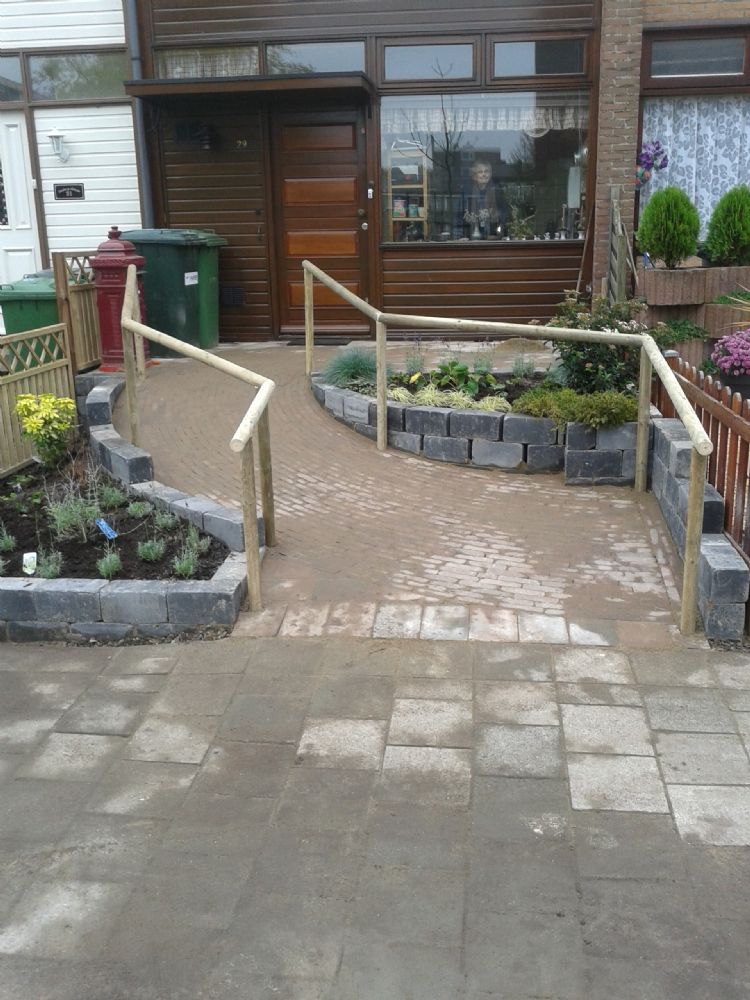 Eén van de klanten van Dick de Jong Hoveniers is Henk Westerhof. Hij schakelde het hoveniersbedrijf enkele jaren geleden in voor zijn moeder, die rond de negentig jaar oud was en alleen woonde. Westerhof: ‘Mijn moeder woonde in de wijk Lombardije in Rotterdam-Zuid en had een tuin voor en een tuin achter het huis. In die wijk zakte de grond heel erg, waardoor het huis een stuk hoger was komen te liggen dan het publieke trottoir. Toen mijn vader nog leefde, had hij in de voortuin terrassen gemaakt, waardoor je rustig naar beneden kon stappen.’ Nadat zijn moeder ten val was gekomen, had ze een rollator nodig. ‘Het lukte haar niet meer om met een rollator de voortuin in te lopen. Het terras liep stapsgewijs naar beneden. Vanwege de afstapjes kon ze de voortuin niet meer doorkruisen.’