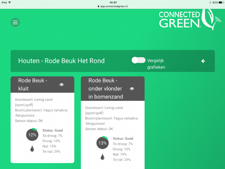 Connected Green Connected Green helpt groenvoorzieners en opdrachtgevers om te besparen op watergift, projectbezoeken en inboet. Daarnaast zorgt het voor een transparantere samenwerking tussen opdrachtgevers en opdrachtnemers. Het systeem werkt met draadloze sensoren die op strategische plekken onzichtbaar in groenprojecten worden weggewerkt. Connected Green biedt naast de optimalisatie van watergift ook in inzichten die helpen bij het verbeteren van groeiplaatsen.