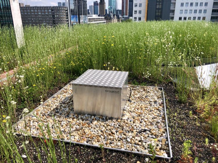 Optigrün - Retentiedak Smart Flow Control Met behulp van een Smart Flow Control kunnen we water afvoeren indien nodig. In principe staat er altijd een x aantal mm water in de retentieboxen. Zodra weerdata de verwachting afgeven dat meer neerslag zal vallen dan dat opgenomen kan worden in de retentieboxen, zal de Smart Flow Control het overtollige deel 24 uur vooraf vertraagd laten afvoeren.