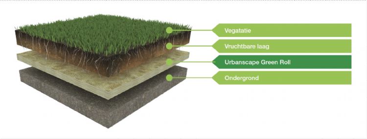 Bera - Urbanscape Green Roll Urbanscape Green Roll is een product dat zorgt voor een extra wateropslag onder de grasmat. Urbanscape Green Roll is gemaakt van natuurlijk materiaal: gesteente waarvan lange vezels zijn vervaardigd. Deze vezels zorgen voor wateropslag, afgifte van water naar behoefte en ze reduceren het verdampen van water bij hoge temperaturen. Het systeem verbetert de wortelgroei, wat resulteert in een beter groeiende en sterker ontwikkelde plant.
