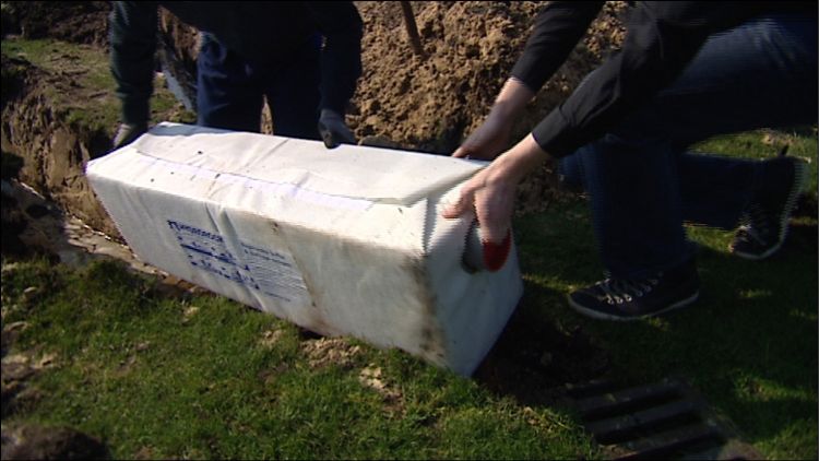 | | De infiltratieblokken worden net onder het oppervlak geplaatst |
