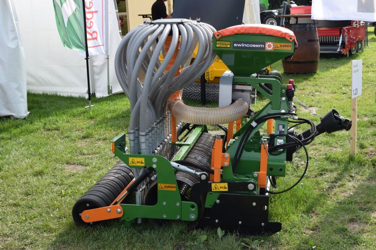 De laatste nieuwe machine die wij toelichten in dit artikel is een professionele graszaaimachine van Coenders Lotumm. Ruud Theelen vertelt me vol enthousiasme over de gloednieuwe pneumatische grasmaaier, de Swingcosem compact graszaaier. De Swingcosem is leverbaar in drie verschillende breedtes: 120, 150 en 180 centimeter. Theelen is naar eigen zeggen overdonderd door de grootschalige interesse in de graszaaimachine op GTH. De machine is al zoveel verkocht in de twee weken dat hij bestaat, dat het moeilijk wordt om dit jaar alles geleverd te krijgen. Aan demo's doet Theelen niet: 'Wij gebruiken een speciale techniek in deze machine die zichzelf bewijst. Als de machine je niet bevalt, dan nemen wij hem terug!'