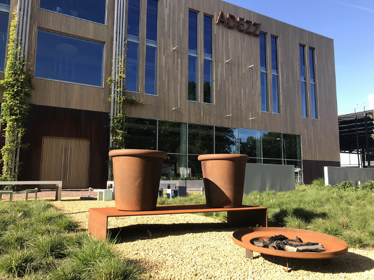 De showtuin voor het kantoor en de showroom van Adezz tonen waar het bedrijf goed in is: vijvers, plantenbakken, bloempotten en tuinhaarden. De verschillende producten voor de hovenier en tuinarchitect zijn ondergebracht in vijf afzonderlijke merken. Het merk Adezz omvat onder meer kantopsluitingen, keerwanden, sokkels, muren, waterelementen en brievenbussen. Alles wat met buitenvuur te maken heeft, wordt verkocht onder het merk Forno; te denken valt aan buitenhaarden, kookfaciliteiten, vuurschalen en houtopslagen. One To Sit is het tuinmeubelmerk; de tafels, loungesets en stoelen langs het zwembad ogen als designer-items. Furns-straatmeubilair is robuust en zwaar en is vooral geschikt voor toepassing in de openbare ruimte: plantenbakken, banken, picknicktafels, afvalbakken, boomspiegels, boomroosters, fietsbeugels, hekken en muren. Dipott betreft alle planten- en bloempotten, in de gewenste maat, vorm en kleur. Zelfs bij een kozijn in een specifieke kleur roze kan een plantenbak in precies dezelfde kleur geleverd worden, in de maat die het beste past bij de kozijnbreedte. Van Hooff: 'De potten vielen voorheen onder Adezz, maar sinds we ze een eigen merk hebben gegeven, zien klanten beter hoe uitzonderlijk ze zijn. Het zijn beslist geen potten die je in het tuincentrum kunt halen.'