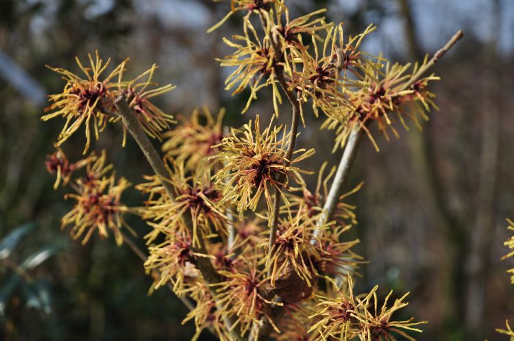 Hamamelis (toverhazelaar) is een vroege bloeier. Er zijn ontzettend veel verschillende cultivars van de toverhazelaar te koop. Hamamelis x intermedia 'Aurora' krijgt van Anne Bulk een extra plaatsje in de spotlights. 'Aurora' heeft grote bloemen van maar liefst 3 cm doorsnede. De bloemblaadjes zijn driekleurig en verlopen van rood via oranje naar geel. Ze zijn door hun grootte en kleur heel opvallend en anders dan het felle geel, waar niet iedereen van houdt. Daar komt de geur nog bij. ''Aurora' heeft een fantastische geur: delicaat, bloemig en citroenfris. Om op te eten. Op de kwekerij ruik je hem al op 3 m afstand', vindt Bulk. De toverhazelaar is goed winterhard. De struik groeit vaasvormig en wordt 3,5 m hoog en behoorlijk breed. Het is geen snelle groeier, maar hij heeft wel wat ruimte nodig. Snoeien is niet nodig. Zet de struik bij voorkeur in de zon of halfschaduw. Schaduw kan ook, maar dan groeit hij minder. De toverhazelaar houdt van lichtzure, humusrijke, goed doorlatende grond, dus geen klei en niet te nat. Hij heeft fijne dunne wortels, die snel rotten als het te nat is. Zorg, zeker in het begin, dat er niet teveel concurrentie is van bijvoorbeeld kleine heestertjes aan de voet.