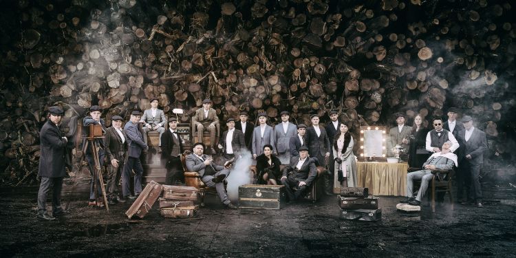 | | De groepsfoto geheel in Peaky Blinders stijl |