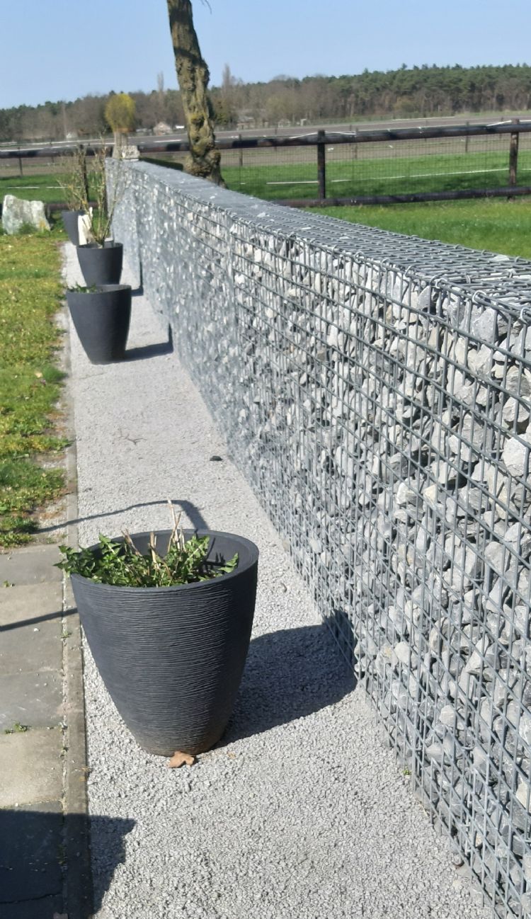 Vlakbij de proefplot staat een steenkorf, waarvoor Normeco panelen van hoogwaardig roestvrij zink-aluminium-gelegeerde draad levert. Naast maatwerksteenkorven levert Normeco gaaspanelen op maat, haken en ringkrammen aan diverse klanten die zelf steenkorven maken.