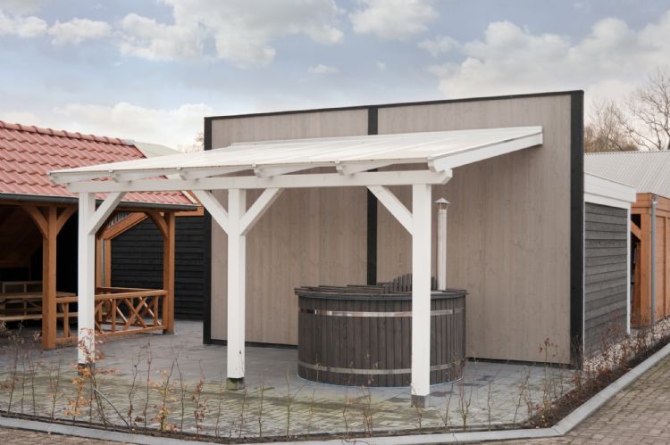 Van der Veen Groenprojecten in Leidschendam is een trouwe gebruiker van een van de Remmers-producten: Induline GW-310. Deze coating is geschikt voor duurzame bescherming van buitenhout zonder bodemcontact tegen blauwschimmel, houtrot en algen. Ook biedt hij bescherming tegen uv-straling, vuil en vocht. Dit zeer dunne, wateremulgeerbare beschermingsglazuur zorgt ervoor dat oppervlakken duurzaam, sterk en mooi blijven. GW-310 wordt vooral gebruikt voor het behandelen van gevelbekleding, tuinhuisjes, schuttingen en veranda's. Induline GW-310 kan op verschillende manieren aangebracht worden. Zo is het product geschikt voor kwasten, dompelen en spuiten. De hovenier uit Leidschendam spuit de induline van Remmers op het oppervlak. 'Op bijna alle overkappingen die we plaatsen, wordt een combinatie van een natural look en een kleur toegepast. De meest voorkomende kleuren zijn momenteel wit, zwart en grijs. De combinatie van houtkleur en zwart zie je veel', vertelt Thomas van der Veen. Hij is zeer te spreken over de toepassing van induline. 'Het is mooi dekkend in één keer. Ook de hechting is goed, maar dat hangt ook een beetje van het gebruikte hout af. Bovendien is er geen voorbehandeling nodig. We kunnen er heel netjes mee werken en hebben er verder geen omkijken naar. Eigenlijk kan iedereen de verf gebruiken.' Van der Veen levert de houtbouwproducten zelf. 'Wij halen het hout bij Van Dorp Hout. We hebben twee timmerlieden in dienst die continu houtwerk uitvoeren. Met deze specialisatie willen we ons onderscheiden.' #K#T Remmers De Remmers Groep is een belangrijke en grote producent en leverancier op het gebied van bouw- en houtbeschermingsproducten. De onderneming werd in 1949 opgericht door Bernhard Remmers en is ook nu nog een onafhankelijk familiebedrijf. Het Duitse concern is actief op veel verschillende markten. De producten variëren van bouwchemische producten tot kunststofvloeren, houtverven en -lakken en industriële laksystemen. Remmers is vertegenwoordigd in meer dan 30 landen in Europa, telt ruim 1.700 werknemers en heeft een jaaromzet van 400 miljoen euro. De ruim 450 producten kenmerken zich naar eigen zeggen door een hoogwaardige techniek en kwaliteit. Voorlichting, scholing en demonstratie zijn belangrijke activiteiten. Ook is research ter plaatse of in het laboratorium mogelijk; dat betreft chloridenonderzoek, zoutanalyse en schade aan verf, steen, beton en mortel.