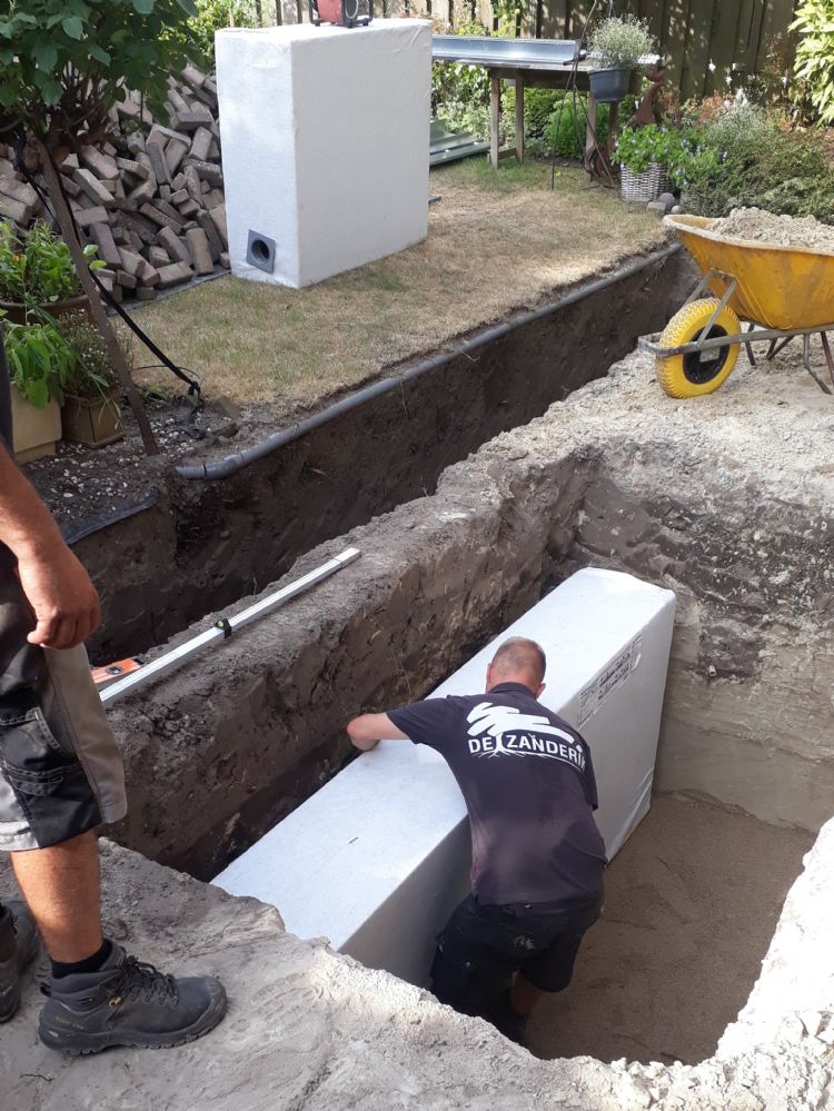 Van Veen vervolgt: 'Er zijn wat ontwerpzaken waar je rekening mee moet houden. Als je het één keer hebt aangelegd, snap je het. Sommige hoveniers komen ervoor terug en worden dan partner van ons. Het is ook echt eenvoudig. Wij leveren de blokken en alle elementen die erbij horen. Eenvoudig gezegd sluit je de hemelwaterafvoer of bijvoorbeeld de afvoer van een lijngoot aan op een zandvangput. Vanaf de zandvangput gaat er een buis met een diameter van 100 mm naar de blokkenvoorziening. Het maakt feitelijk niet uit waar je dit aanlegt, zolang je maar rekening houdt met enig afschot. Zo kan het makkelijker zijn om de blokken in de border te plaatsen en de zandvangput met rooster bijvoorbeeld onder een buitenkraan. Dan heb je een zandvangput én een put onder de buitenkraan. Omdat we veel kennis hebben opgedaan, hebben we voor veel situaties oplossingen.' Een veel voorkomende vraag is natuurlijk hoeveel Hydrorock kost in verhouding tot bijvoorbeeld infiltratiekratten. Van Veen: 'Voor het antwoord daarop kom ik terug op de dynamische infiltratiecapaciteit. Stel je een situatie voor waarin je 1000 liter water moet kunnen bergen. Kijk je sec naar de blokken, dan zijn die misschien duurder dan andere materialen. Maar denk even door. Vanwege de dynamische infiltratiecapaciteit heb je in veel gevallen minder opslagcapaciteit nodig. Dan blijk je met de blokken even duur of goedkoper uit te komen. En daar blijft het niet bij, want minder ruimte betekent ook minder uitgraven en minder afvoeren, én de blokken kunnen door één persoon worden aangelegd. Mijn advies is dus altijd om een goede en volledige vergelijking te maken op basis van alle parameters. Dan weet je exact waar je op uitkomt. Uit ervaring weet ik inmiddels dat Hydrorock vaak erg interessant is. Eenvoudig aan te leggen door één enkele persoon, licht van gewicht, gaat decennialang mee en berokkent geen schade aan de bodem.'