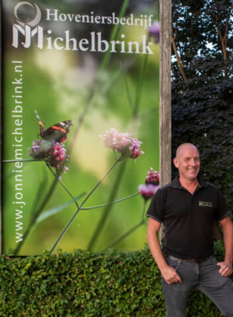 Hoveniersbedrijf Jonnie Michelbrink in Hulsel bestaat sinds 1989 en werkt met acht vaste medewerkers. Jonnie en zijn vrouw runnen de zaak. Het bedrijf is haast vanaf het eerste uur aangesloten bij Tuinkeur.