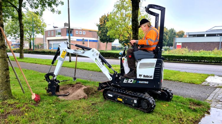 Het pionierswerk werd dus verricht door de E10E. Die wordt door Intertechno veel ver-kocht aan bouwgerelateerde bedrijven, die de minigraver inzetten voor inpandige sloop-werkzaamheden, en dus - in toenemende mate - aan hoveniers. 'Voor de E10E vormen hoveniersbedrijven het grootste deel van onze klanten', zegt Boer. Met een breedte van 71 centimeter is de E10, zowel in elektrische als dieseluitvoering, zeer geschikt voor werk in tuinen. 'Dit formaat is voor hoveniersbedrijven wel zo'n beetje het maximum. Je moet immers vaak door nauwe doorgangen en langs schuttingen en heggen.' Dat geldt ook voor de Bobcat MT55, een andere favoriet onder hoveniers, maar daarvoor staat voorlo-pig geen elektrische versie gepland. De compacte rupslader biedt geen ruimte voor de benodigde accu's. Dat de hoveniersbranche er in vergelijking met de bouwsector wat lan-ger over heeft gedaan om de elektrische machine te omarmen, ligt volgens Boer aan de aanschafprijs van de E10E. Die kost, afhankelijk van het model, ruim het dubbele van de dieselvariant, waarvan Bobcat er wereldwijd tienduizenden aan de man heeft gebracht. Ook in Nederland is de klassieke E10Z nog volop te vinden. 'Kleine en middelgrote bedrij-ven, en dat is het leeuwendeel van de hoveniers, kijken de kat nog even uit de boom. Het is natuurlijk een forse investering. Maar intussen heeft de E10E zijn waarde bewezen.'