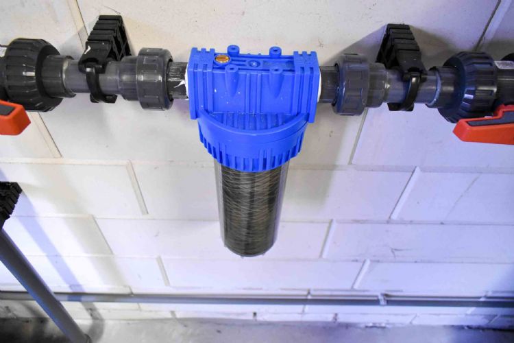 | | Het bronwater gaat in de schuur eerst door een demontabel voorfilter. |