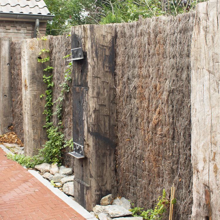 Terug van even weggeweest zijn de zichtdichte heidematten van twee meter hoog en drie meter breed. Schuurman: 'Ze zijn gelukkig weer op voorraad. Deze heidematten zijn volledig zichtdicht. Het is dan ook een mooi alternatief voor een houten schutting. De matten zijn gemaakt van dichte strengen heide die vervolgens met stevig gegalvaniseerd draad om de tien centimeter aan elkaar zijn gebonden. De matten passen perfect in een meer natuurlijker ontwerp, zoals bijvoorbeeld in een prairietuin. Om de matten vast te zetten aan een gaaswerk, hebben we een heel handig tangetje met ronde bek.'
