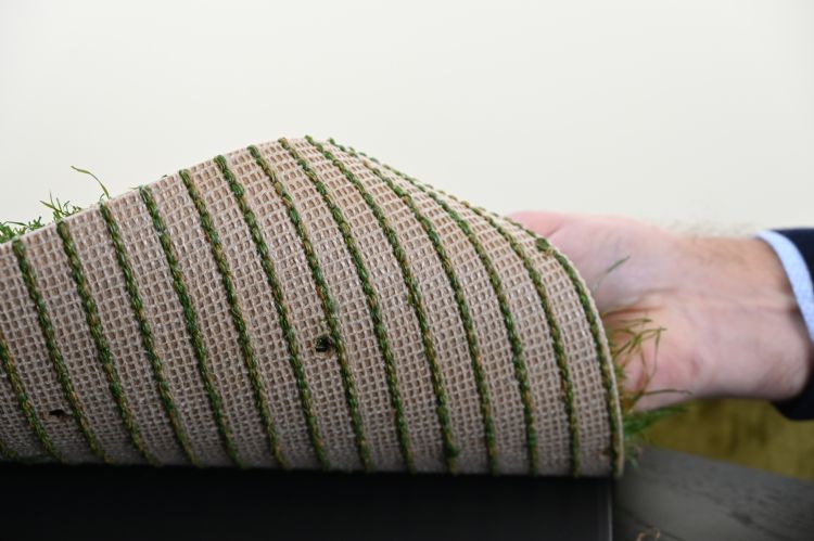 Omdat het bedrijf ontstaan is uit TenCate, heeft Royal Grass altijd sterk ingezet op doorontwikkeling en innovatie. Verhoeven wist dat mensen wel kunstgras willen, maar alleen als het de look-and-feel van natuurgras heeft. Het streven is dan ook om de natuurlijke kenmerken van natuurgras één op één te kopiëren tot op microscopisch niveau. De eerste doorontwikkeling betreft de rootzone, de kleine bruine sprietjes onder in de kunstgrasmat, ook wel mosdraad genoemd. Hierdoor is er veel minder zandinfill nodig, aldus Verhoeven. Hij schetst een zandinfillreductie van maar liefst 75 procent, wat ook enorm scheelt in transportkosten en CO2-uitstoot. Voor infill heeft Royal Grass altijd gestreefd naar het gebruik van natuurlijke materialen. Verhoeven: 'Inmiddels is de infilldiscussie heel actueel in de sportwereld. Wij hebben altijd gezegd: plastic infill moet je niet willen; dat zorgt voor microplastics in het milieu.'