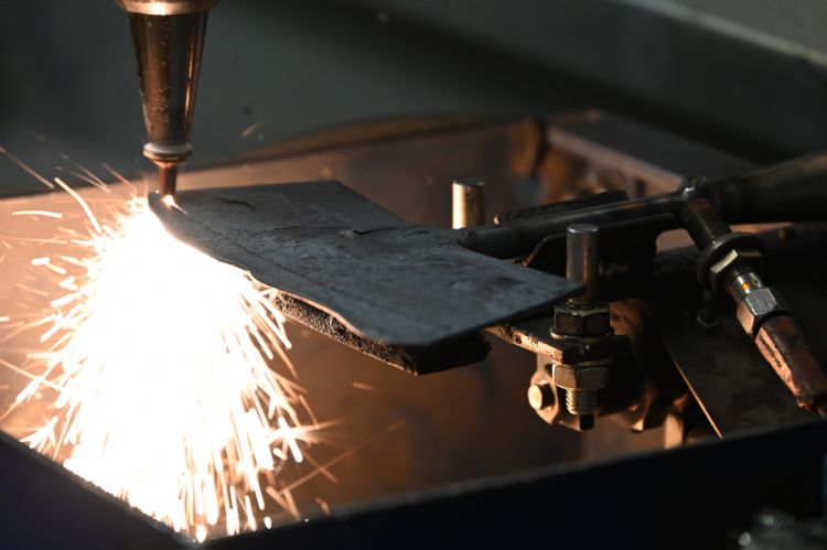 Hier worden de schoffelbladen uit het gewalste staal gesneden met een fiberlasersnijmachine. Door dit te automatiseren, zorg je voor zo min mogelijk restafval in het productieproces.