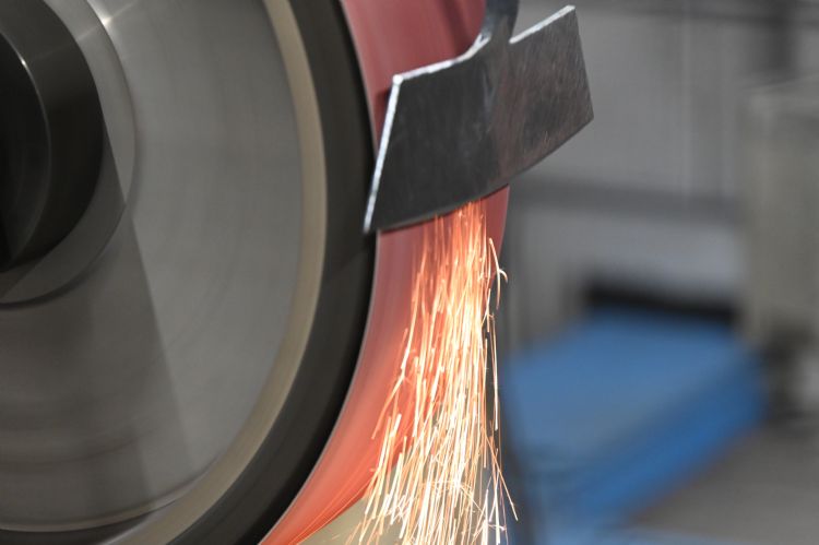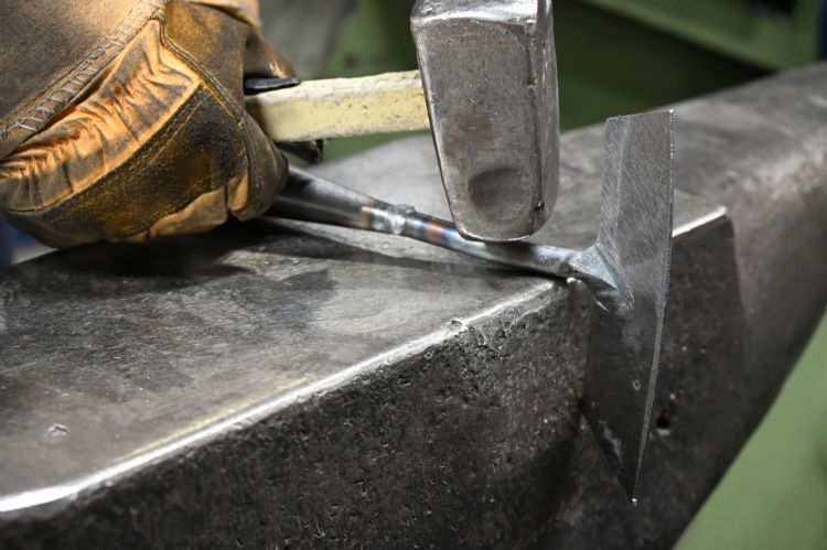 Vervolgens wordt het schoffelblad geslepen. Dit proces gebeurt nog handmatig.
