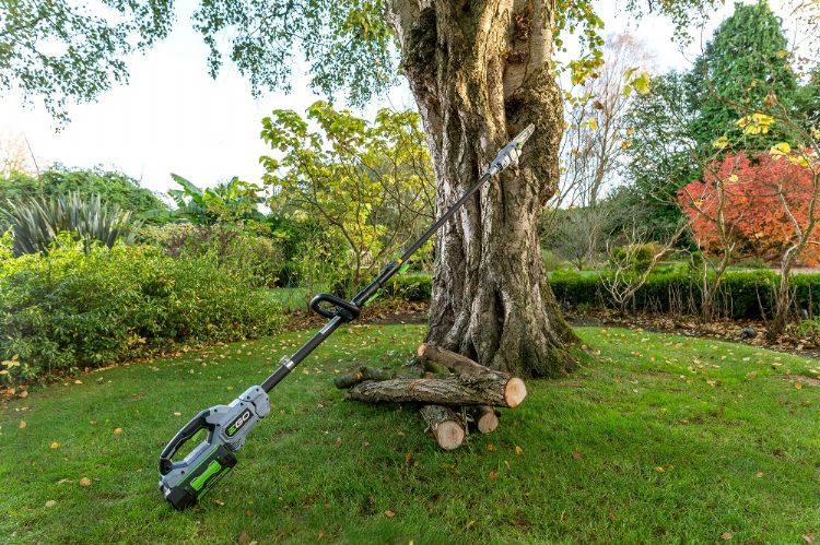 Op Hart van Berkelland staan veel bomen, die regelmatig gesnoeid moeten worden. In de lente, zodra alles uitloopt, is de EGO-stokzaag PS1000E een veel gebruikte machine. Deze stokzaag bestaat uit een basismachine met een koolstofvezel-as, het stokzaagdeel en verschillende verlengstukken die eveneens van koolstofvezel zijn. Door de opbouw van verschillende delen kan de stokzaag makkelijk vervoerd en opgeborgen worden én in uitschoven toestand een hoogte van 4 meter bereiken. Met een extra verlengdeel is het zelfs mogelijk om een lengte van 5 meter te bereiken. De stokzaag heeft een zaagblad van 23 cm en een kettingsnelheid van 23 m/s. De basismachine weegt 4,2 kg (zonder accu), wat hem goed hanteerbaar maakt tijdens het werken. Hij is uitgerust met ledverlichting bij het zaagdeel, wat handig is bij snoeien in een donkere omgeving. Ook de begeleidingshaak bij het zaagdeel geeft de gebruiker gemak. Hij kan de stokzaak hiermee boven aan een tak haken, voor een makkelijke geleiding van de zaag. Daarnaast beschikt de EGO-stokzaag over een automatische kettingspanner en heeft de kettingdeksel een open structuur. Dit voorkomt verstoppingen en het zaagsel wordt snel afgevoerd.