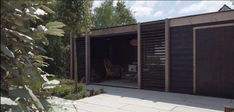 'Er moest een houten veranda komen met glazen schuifwanden en een aansluitende berging. Het ging om een woning aan de dijk in Nootdorp, wat de opdracht extra gecompliceerd maakte. Onze oplossing was een 2,5 meter lange schroefpalenfundering met daarop een betonpoer. Toen gingen we aan de slag met de houten constructies, die tot op de millimeter precies voorgezaagd, gelabeld en afgeleverd werden door Van Dorp Hout', vertelt Shaun Heijbers van Hoveniersbedrijf Heijbers & Verkleij.