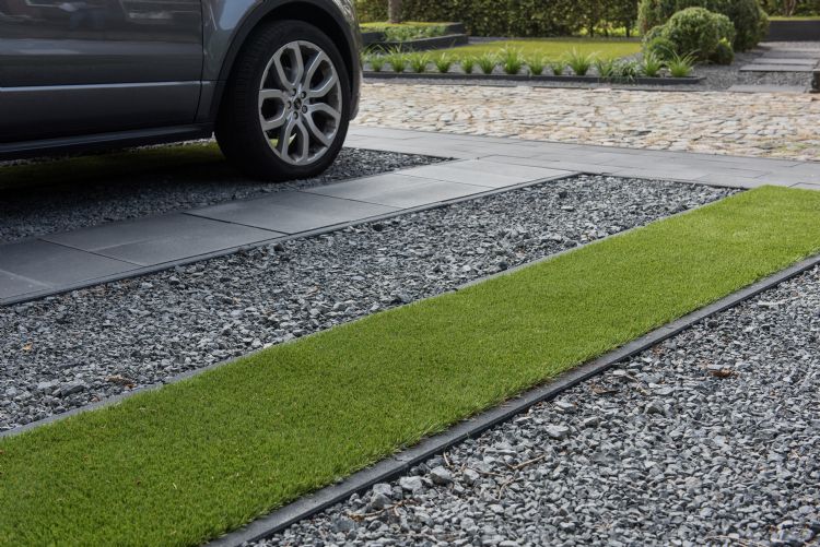 Ook bij een oprit kun je creatief omgaan met de verhouding tussen verharding en groen
