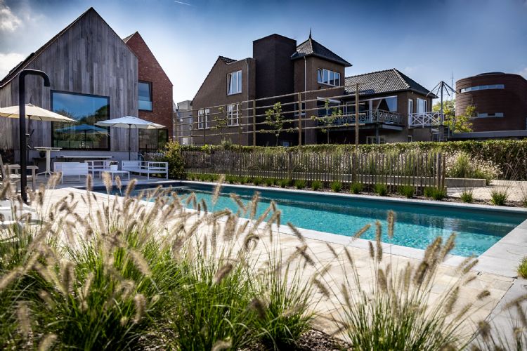 Kwanten richt zich op tuinen van 100 vierkante meter tot 20 hectare. De grootte is hierbij ondergeschikt aan de kwaliteit van de tuin. 'We focussen op de betere, luxueuze totaalprojecten. We zitten niet te springen om tien vierkante meter klinkers en een grasmat van vier bij vijf aan te leggen. We mikken meer op projecten met bestrating, grasmat, beplanting, eventueel een zwembad en buitenverblijf, waarbij we kunnen samenwerken met derde partijen.' Het hoveniersbedrijf, dat vlak bij de grens tussen Nederland en België ligt, bedient klanten in de hele regio. Dat wil zeggen: het zuidelijke deel van Noord-Brabant (tot Eindhoven) en Vlaams-Brabant en de Antwerpse Kempen. Volgens Kwanten maakt het niet veel verschil om voor Nederlandse of Belgische klanten te werken. 'In Nederland zijn de tuinen die we aanleggen of onderhouden in het algemeen iets kleiner, maar de klanten hebben wel wat hogere budgetten voor luxueuze projecten. Dat geldt in België ook als je richting steden als Brussel en Leuven gaat.' Ook de regelgeving is over de grens niet veel anders. 'Er zijn wat kleine verschillen in bepaalde regels, zoals voor grondverzet. Maar dat ligt meer in de praktische uitvoering en afwerking.' Hoewel de focus op de particuliere tuin ligt, zet Gert Kwanten ook in op de b2b-markt. 'We bieden aanleg en onderhoud voor de buitenruimte van bedrijven aan. We zijn gespecialiseerd in het ontwerp en de aanleg van representatieve en onderhoudsvriendelijke bedrijfstuinen. We werken ook veel voor projectontwikkelaars, waarvoor we bij appartementencomplexen of wooneenheden tuinen aanleggen. We betrekken bij het ontwerpen ook de eindklant van dergelijke projecten.' De tuinaannemer is overigens niet echt actief op het gebied van openbare werken, maar op verzoek van een partner doet Kwanten weleens mee aan een aanbesteding. Een belangrijke groeitak voor Kwanten is de aanleg van zwembaden. Kwanten: 'We zijn volledig ingesteld op totaalprojecten; die kunnen we van a tot z met onze eigen mensen en middelen uitvoeren. Het gaat om zwembaden, vijvers, tuinen en beplanting. Alles wat erbij komt kijken, kunnen we realiseren, van het ontwerp tot de oplevering van het project. Wij zijn ervaren in de plaatsing van bouwkundige zwembaden, PPC- en monoblock-zwembaden.'