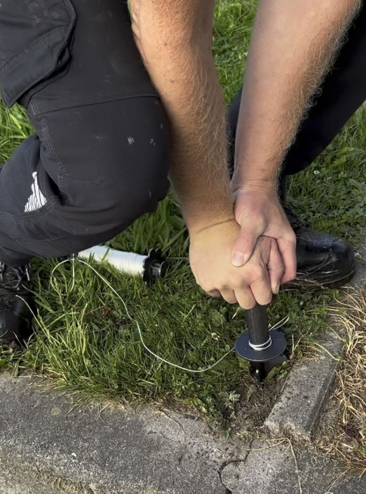 Ook Marcel Veenstra van Hoveniersbedrijf Rozengaerde in Dalfsen probeerde de Plantliner uit. Dit bedrijf verzorgt in de regio Dalfsen, Zwolle en Ommen tuinaanleg en -onderhoud en legt bestrating aan. Veenstra reageerde direct toen hij op de Facebookpagina van vakblad De Hovenier een oproep zag voor testers. Hij roemt de degelijke stalen tool en vertelt over de toepassing: 'Als je de Plantliner ondersteboven houdt, schiet er een pal los, waardoor je de nylon draad van de spoel kunt afrollen', vertelt hij. 'Je kunt hem rustig een tik met een rubberen hamer geven om hem in een vaste bodem vast te zetten. Dezelfde pal zet het afwindmechanisme vast, zodat je de nylon draad gemakkelijk kunt opspannen. We hebben er geen last van dat de draad los slipt van een metalen pen terwijl we aan het werk zijn.'