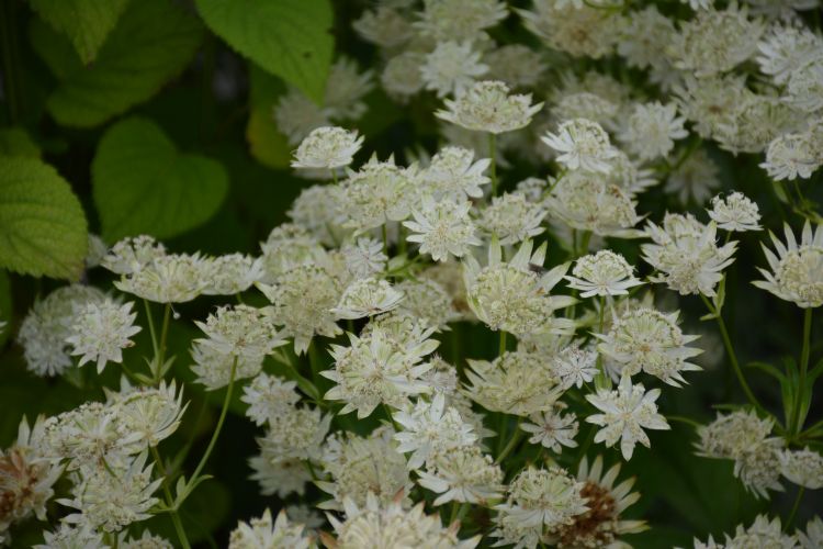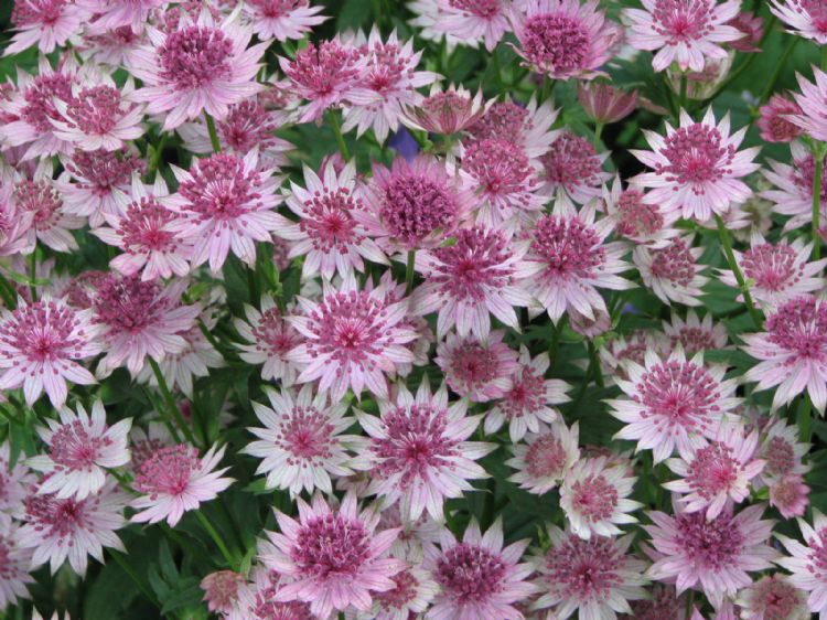 Astrantia is familie van de Apiaceae en als je goed kijkt, zie je dat de bloem een grove versie is van andere schermbloemigen zoals fluitenkruid. Het blad, daarentegen, is grof ingesneden, terwijl de meeste schermbloemigen een dubbel ingesneden blad hebben, soms zelfs driedubbel. Groot sterrenscherm, zoals de Nederlandse naam officieel luidt, houdt van een niet te droge, liefst kalkrijke bodem. Op andere grondsoorten groeit de plant wel, maar op veengrond, bijvoorbeeld, geeft hij veel blad en minder bloemstelen. Vaak wordt het blad dan ook snel lelijk gedurende het groeiseizoen. Zandgrond met een lage pH (zuur) die matig voeding biedt, is ook niet ideaal. Er ontstaan snel droogteranden langs het blad.