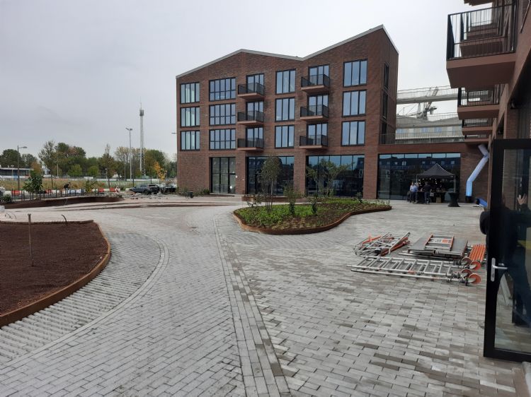 Deze daktuin van circa 33 bij 42 meter wordt aangelegd op de parkeerkelder van een groot flatgebouw, met straks ook een supermarkt. Het complex is recent opgeleverd, dus de eerste bewoners zijn net gearriveerd. Het is een gemeentelijke daktuin, openbaar en 24/7 toegankelijk. Mensen die daar straks boodschappen komen doen, kunnen er terecht, net als de bewoners van het flatgebouw. Voor die bewoners is er op de tweede verdieping ook nog een privédaktuin. De gemeentelijke daktuin is niet helemaal vlak; er is een hoogteverschil dat visueel mooi in het oog springt. De tuin wordt doorkruist door een pad; aan weerszijden daarvan komen grasmatten te liggen. De beplanting, waaronder bomen en meerstammige heesters, staat in organisch gevormde cortenstalen bakken.
