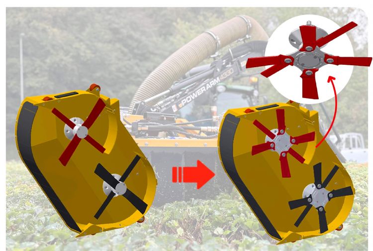 Dabekausen presenteert twee updates uit het gamma hagensnoeiers. Allereerst wordt een nieuwe RM1800pro gepresenteerd. Dit snoeidek met drie mesrotoren met vergrote overlap van de messen is terug van weggeweest naar aanleiding van vragen uit de markt. Veel hagensnoeiwerk wordt tegenwoordig uitgevoerd met mobiele kranen en de combinatie van een Dabekausen Optima-draaikantelstuk met een RM1800pro-hagensnoeier biedt een enorme verbetering van de snoeicapaciteit. Als tweede nieuwigheid toont Dabekausen de mogelijkheid tot het monteren van slingermessen op zowel voornoemde RM1800pro als op de RM1300pro. Een set slingermessen is te allen tijde uitwisselbaar met de vaste messen.
