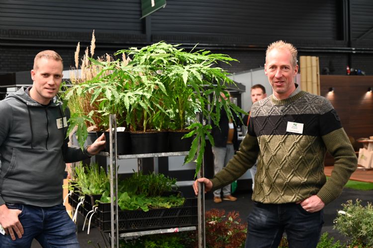 Antoon Rijnbeek en Marvin Kleijn van Antoon Rijnbeek handelskwekerij attenderen bezoekers op twee relatief nieuwe, maar vooral onbekende planten. Kleijn: 'De fatsia polycarpa Green Fingers blijft wat kleiner en fijner dan de normale fatsia japonica. Deze groengevingerde plant is perfect voor een jungle-tuin.' Verder noemt Rijnbeek de mahonie eurybracteata 'Soft Caress'. 'Deze mahonie is wat minder scherp dan de standaard mahonie, vandaar ook de naam: 'Soft Caress'. Deze plant is dus een goede keus voor een kindvriendelijke tuin, maar ook voor de standstuin omdat hij langzaam groeiend is. Hij is goed beschikt als vak beplanting met een late bloei van gele pluimen in november/december.'