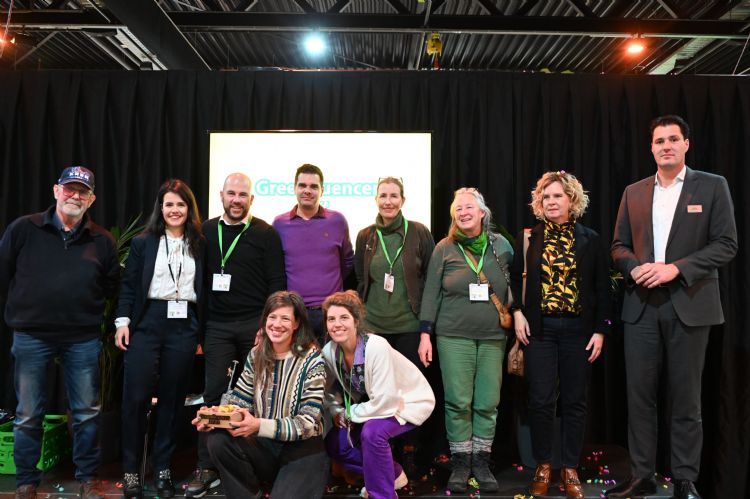 Op dinsdagavond mochten wij ook de Greenfluencer Award uitreiken aan de dames van Sprinklr. Op de foto zijn alle aanwezige genomineerden met redacteur Willemijn van Iersel en VHG directeur Marc van Rosmalen.