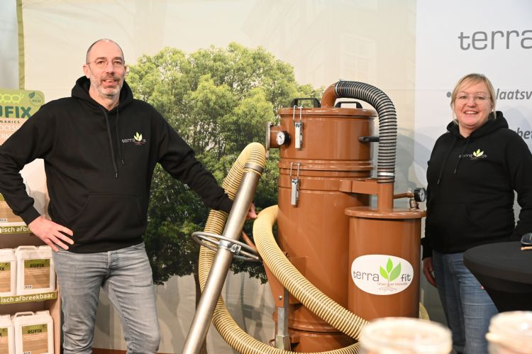 Na enkele jaren afwezigheid was ook Terra-Fit weer van de partij. Ivo de Groot en Angelique Esselink pakken de draad weer op met het concept. Volgens de Groot begint Beter immers bij de bodem. 'Boomverzorgers en hoveniers kijken bij boomproblemen vooral naar boven, naar de boom. Ze zijn eigenlijk bodemblind.'