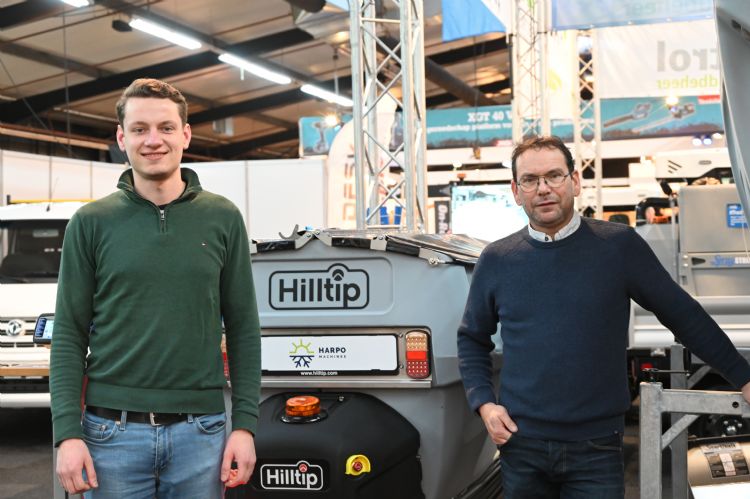 Met gevoelstemperaturen van -15 konden ook de wintermachines van Hilltip op voldoende interesse rekenen. Accountmanager Martijn Beekwilder en Derk Boudeling poseren hier voor de Hilltip 550.