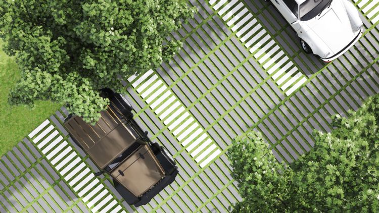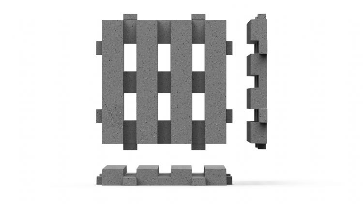 Het resultaat is er: een tegel van 100 x 100 x 12 centimeter met daartussen openingen en niveauverschillen. De openingen kunnen opgevuld worden met grind, split of een andere vulling en het is ook mogelijk er gras in te laten groeien. Dan wordt de tegel gebruikt als grastegel. Optisch gezien lijken er losse tegels in de tuin of oprit te liggen, maar dankzij het ingenieuze ontwerp ligt er een stevige tegel die middelzwaar verkeer kan dragen. Dat maakt de tegel uitermate geschikt voor opritten en parkeerplaatsen.