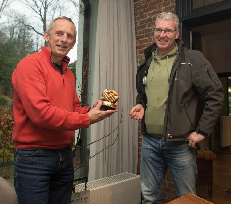 | | Het afscheid van Ad van Nieuwland, die de fakkel van secretaris doorgaf aan Ilse Lamers, krijgt uit handen van Rob Mocking een Gouden Handdruk. |