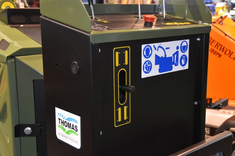 Merckx: 'Deze noviteit van Timberwolf hebben wij voor het eerst gepresenteerd tijdens de Agribex-vakbeurs in Brussel. Het condensatorblok is hier nog rechts op de machine gemonteerd. Timberwolf is marktleider voor professionele houtversnipperaars in het Verenigd Koninkrijk en groeit wereldwijd nog steeds.'
