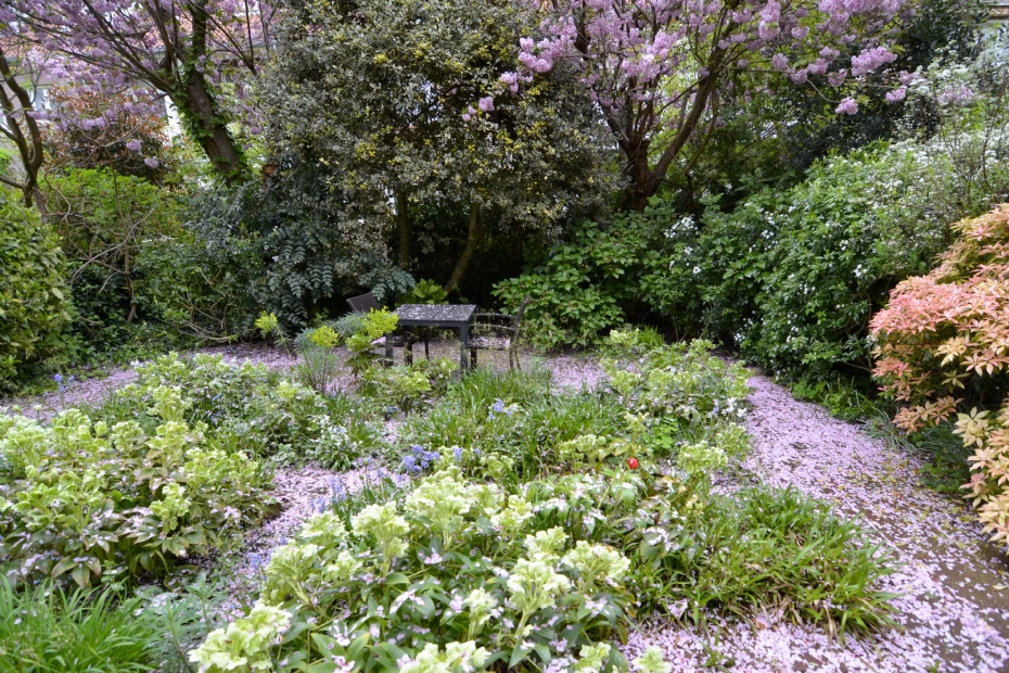De charme van deze tuin ligt volledig in de ruimtelijkheid van de indeling en de keuze van de beplanting. Dit project laat tevens zien hoe je ruimte kunt creëren door overbodige harde materialen, zoals schuttingen, te vermijden. Bij de opbouw van de beplanting is optimaal gebruik gemaakt van enkele grote bomen en heesters die al in de omringende tuinen aanwezig waren. Op ooghoogte blokkeren nu diverse groenblijvende heesters de inkijk uit de buurtuinen zonder dat een formele afscheiding de tuin hokkerig en eentonig maakt. Het onderhoud aan deze tuin vergt niet meer dan een paar uur werk per jaar.