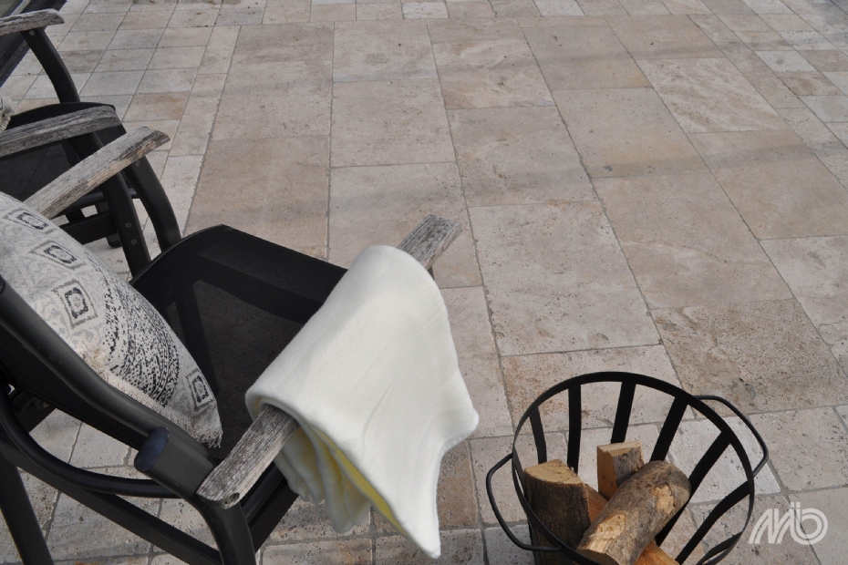 Een andere trend is volgens Huijts de grootformaat-tegel. 'Hoe groter de tegel, hoe beter, bij wijze van spreken. Hoveniers vinden hierin ook steeds meer hun weg.' Daarnaast is natuursteen populair. 'Bijvoorbeeld Belgisch blauwsteen (spotted bluestone) en Vietnamees hardsteen. Ook dark grey gevlamd is een mooie en gewilde variant. Travertin is ook weer in; dat is beschikbaar in drie fraaie varianten: Economix, Ivory Cream en Scabas. Keramiek met travertin-look bieden we ook aan; dat is iets lager in prijs. Ook de look van natuursteen wordt steeds populairder, zoals kalksteen met een marmer-look. Het gaat dan vooral om zachte, aardse tinten, zoals beige en taupe.'