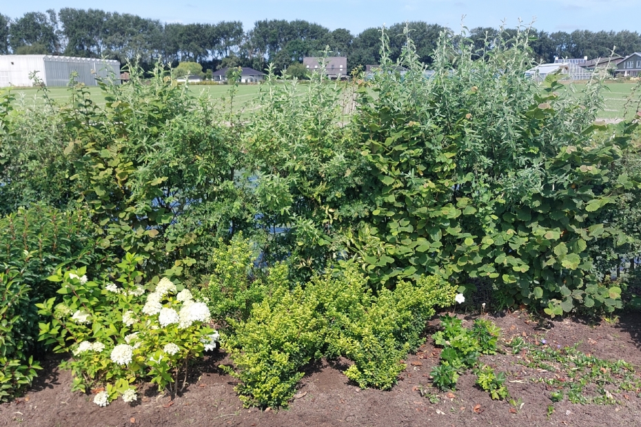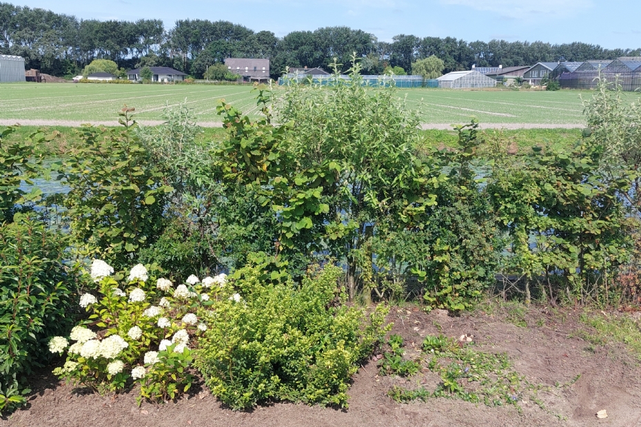 'We hebben de bodem 40 à 45 centimeter diep gespit en vervolgens gefreesd om de grond goed los te maken en mogelijke storende lagen te doorbreken, om vervolgens de DCM Vivimus effectief in de bovenlaag te integreren. De toegevoegde Activator zorgde ervoor dat de planten direct goed van start gingen.' In het derde vak werd geen enkele behandeling toegepast. Door de extreme regenval kon de proef pas op 15 mei van start gaan. 'Dat is erg laat, maar juist ook interessant om te zien wat planten onder deze condities gaan doen.' Om de proef relevant te maken voor hoveniers, werden planten geselecteerd die zij doorgaans ook in hun werk gebruiken, zoals Anemone sylvestris, Hydrangea paniculata 'Limelight', Ilex crenata 'Dark Green', Prunus lusitanica 'Angustifolia' en Vinca minor.