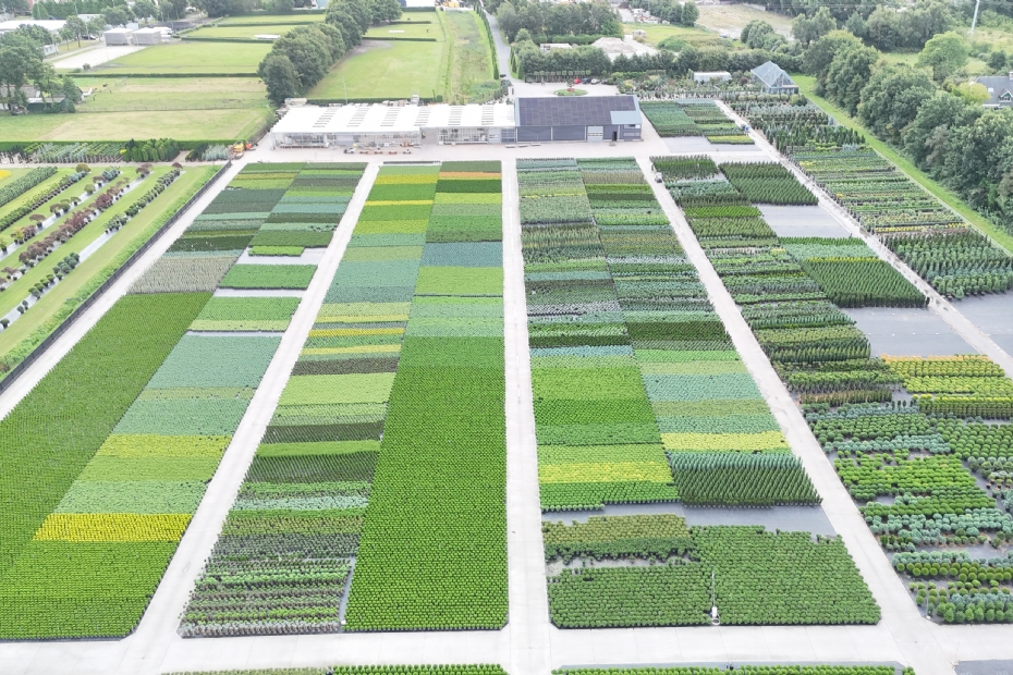 | | Inclusief de pleinen omvat de kwekerij zo'n 8 hectare aan voorraad. |