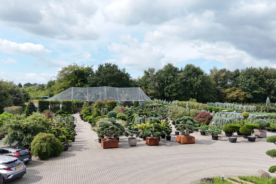 Het assortiment van De Bloemenkampen is niet alleen breed, maar ook groot. De planten zijn leverbaar vanaf P23/C5; sommige bomen worden geleverd in bakken van wel 1.000 liter of in grote cortenstalen bakken. 'Wat de klant vraagt, proberen wij te realiseren', vertelt Van den Berg. 'En dat lukt eigenlijk altijd wel. Wij onderscheiden ons doordat we naast heel veel soorten ook heel veel potmaten hebben. Ook bonsaivormbomen van 5 tot 40 jaar oud leveren we in allerlei soorten en maten.'
