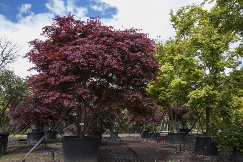 Acer palmatum 'Atropurpureum', voor een schaduwrijk microklimaat in de luwte