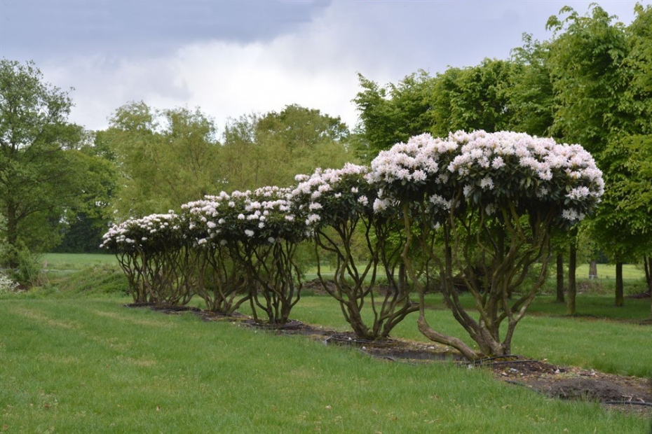 Rhododendron 'Cunningham's White', voor een schaduwrijk microklimaat in de luwte