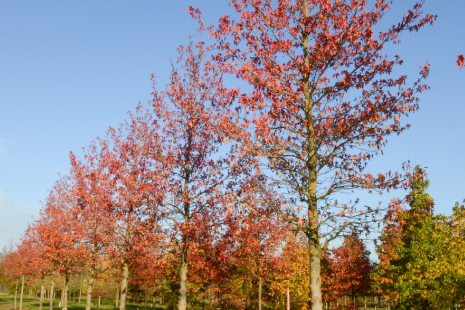 Liquidambar styraciflua 'Worplesdon' is met zijn diepe wortelgestel geschikt voor een microklimaat met fluctuerende waterstand, zoals een wadi.