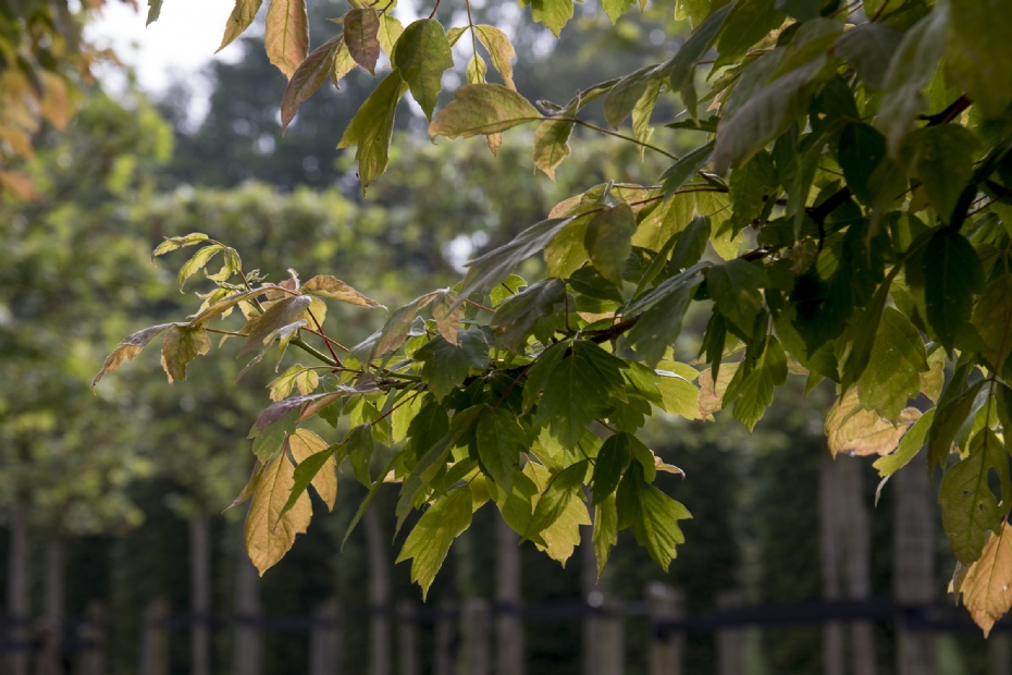 Acer negundo 'Sensation'. Paarden die abnormaal veel bladeren of takken van deze boom eten, kunnen last krijgen van maag- en darmproblemen of andere ongunstige reacties.