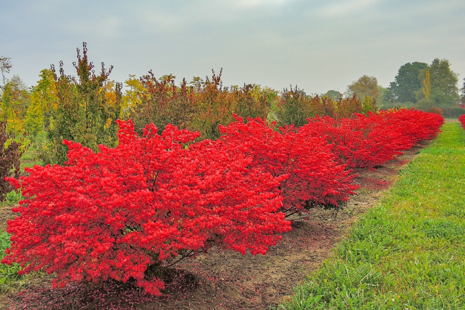 Euonymus alatus 'Compactus' verandert van donkergroen in de zomer naar knalrood in de herfst.