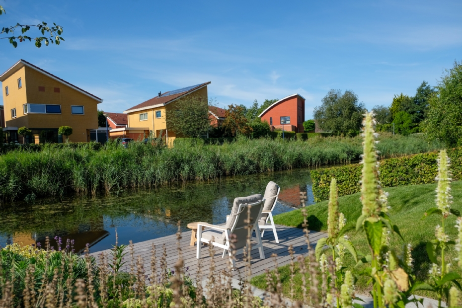 | Het hoogteverschil tussen de woning en de waterlijn bood kansen voor creatieve oplossingen. |