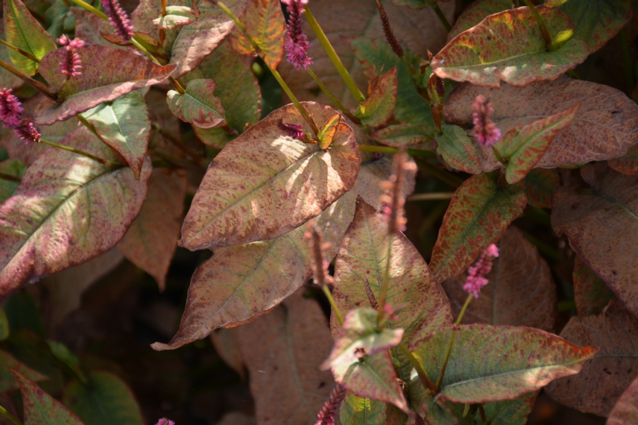 Spint bij Persicaria. Na een bui groeit de plant er weer 'doorheen'.